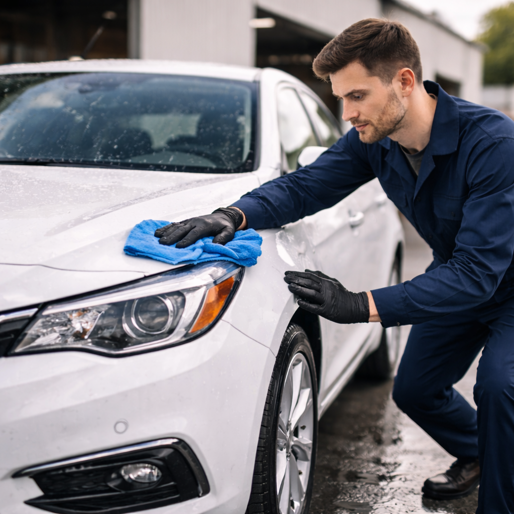 Washed, vacuumed, waxed, and final checklist before collection.